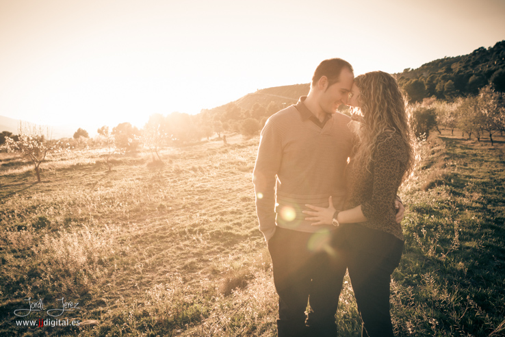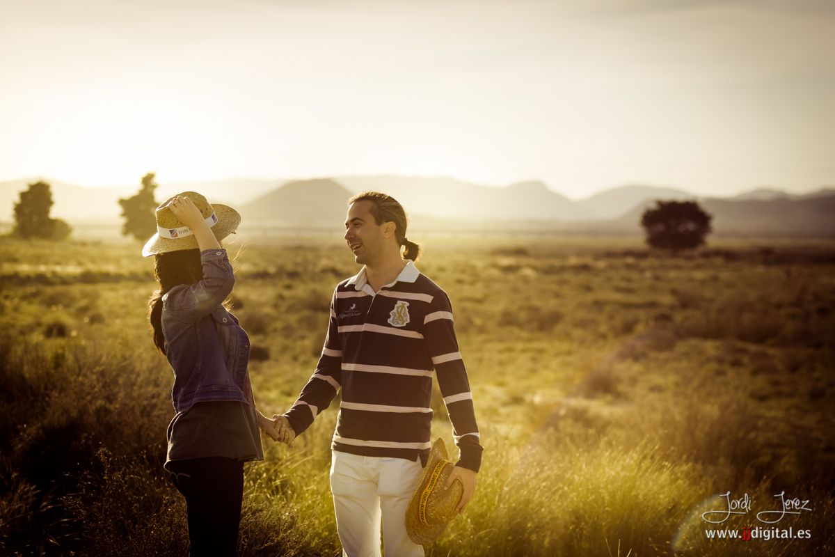 En dicha sesión se pretendía realizar una parte importante de las fotos al atardecer, es decir los minutos previos a la puesta de sol, y aunque todo estaba calculado, resulta que en la localización donde se realizó la sesión, debido a la orografía del terreno, el sol se nos escondió unos 20 minutos antes de lo previsto, quedándonos sin tiempo para este tipo de fotos. No obstante creo que aprovechamos muy bien la tarde tanto en fotos de interior como en las de exterior y pudimos realizar un bonito y divertido reportaje.